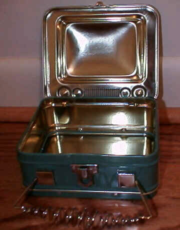 Lunchbox/tote measures 4.5" x 5.5" x 2.5" and is made of tin! Mint, never used!